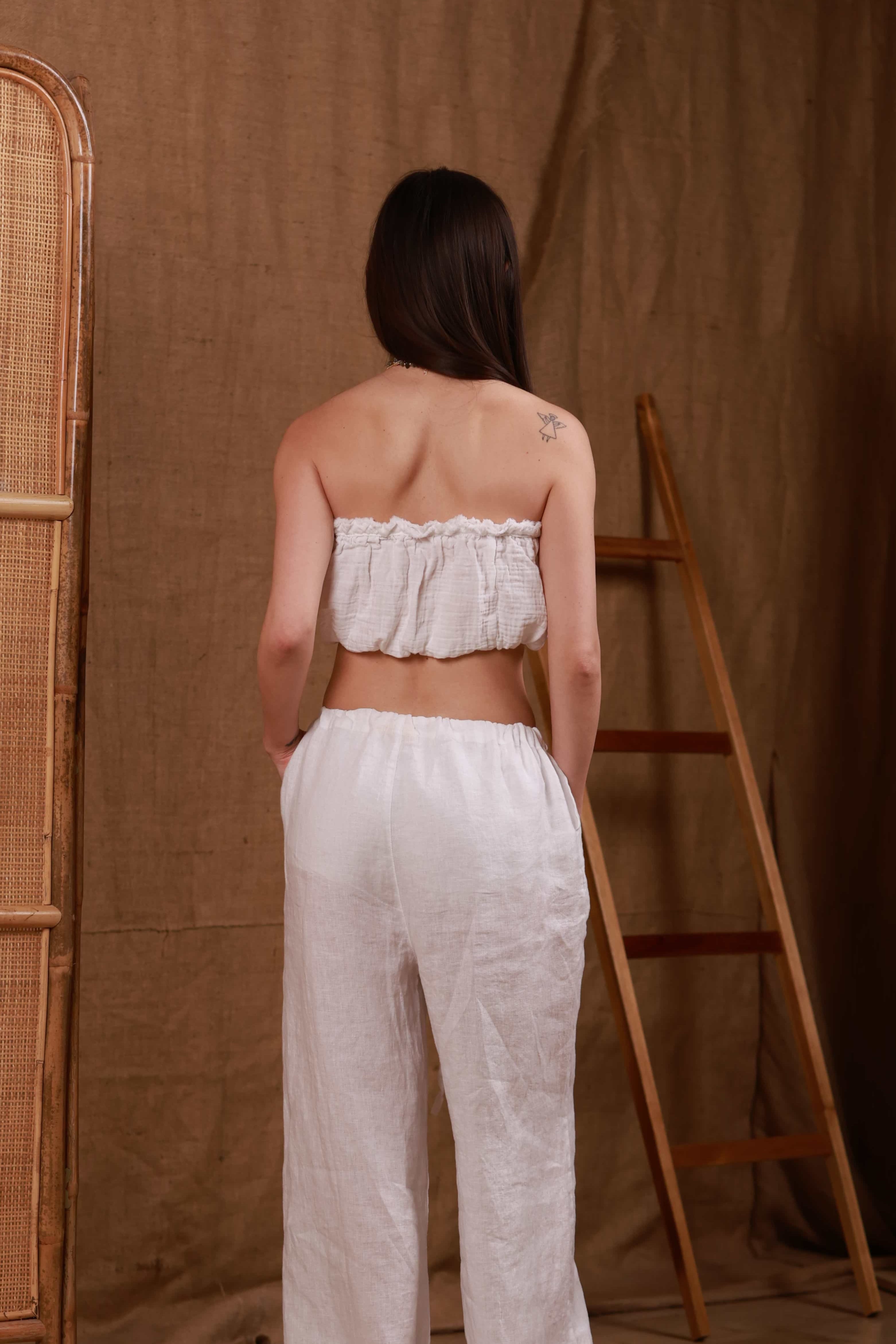 Women's Bandeau Top – 100% Cotton Muslin, White